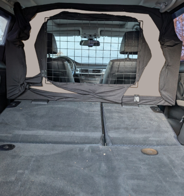 Det första du skall göra är att fälla baksäten framåt. Då får du automatiskt en grund att ställa din vägg på. Mät nu avståndet mellan ryggen på det fällda baksätet och upp till taket. Det behöver inte vara speciellt exakt mest så du ser hur hög masonitskivan måste vara. Sedan mäter du avståndet från dörr till dörr i baksätet. Du brukar klara dig med ca 1.2 meter bred och 0.65 meter hög.